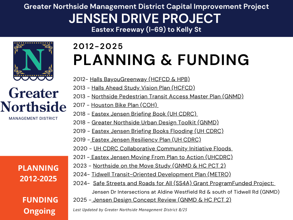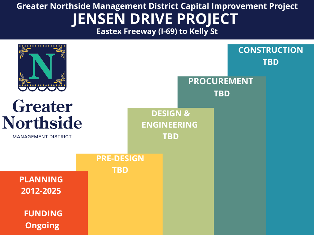 The Jensen Drive Project is a 3.67-mile improvement initiative to enhance safety, accessibility, and mobility for all transportation modes, including vehicles, pedestrians, cyclists, and transit users.